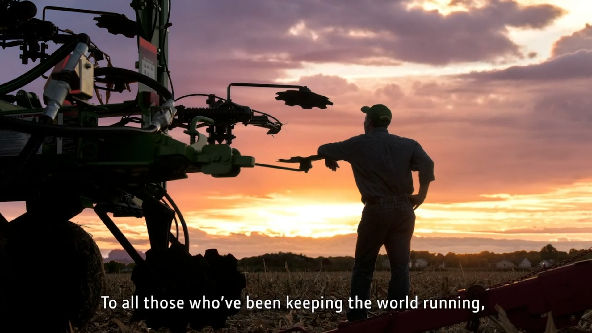 But in the spring of 2020, Covid-19 unleashed a global pandemic the likes of which no one had seen. Deere’s work force was immediately declared ‘essential’ in order to keep the supply chains operating. In the same moment, we were briefed to craft a tribute to these brave men and women who were keeping the world running.